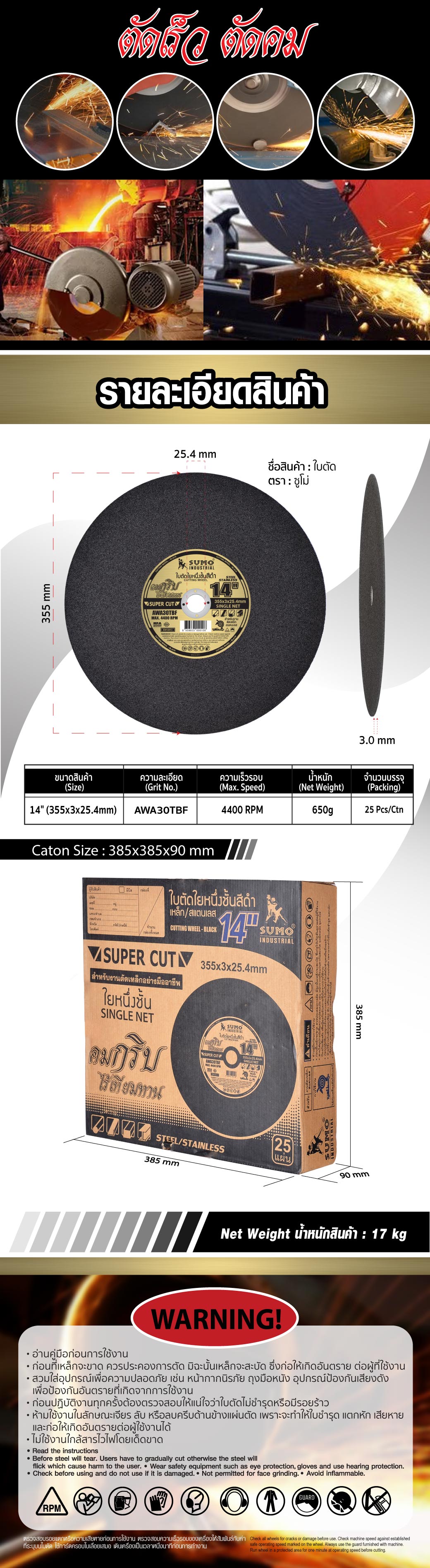 ใบตัด 14"x3x25.4mm SUMO สีดำ