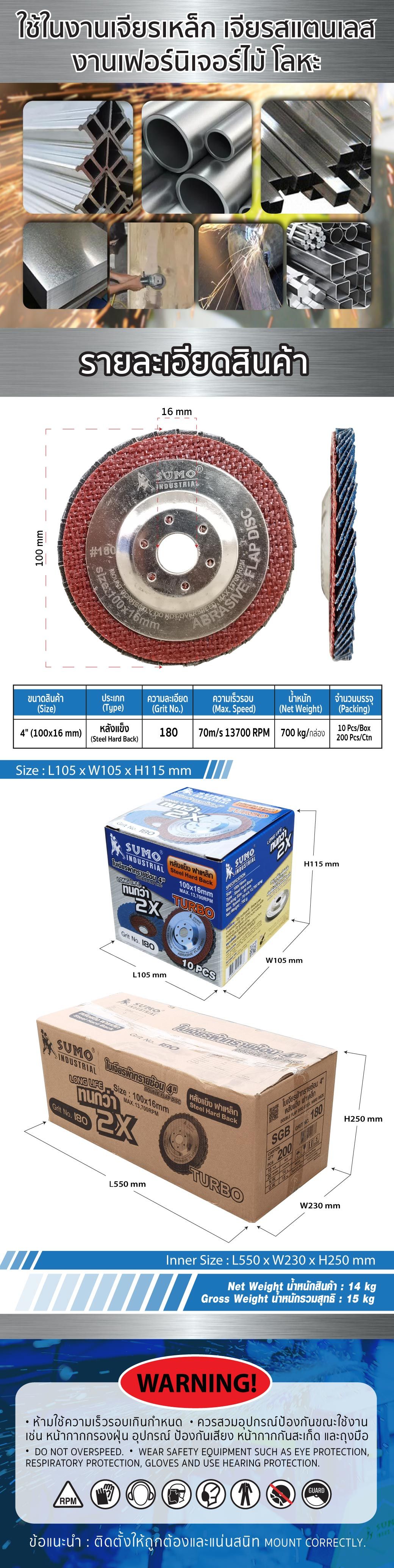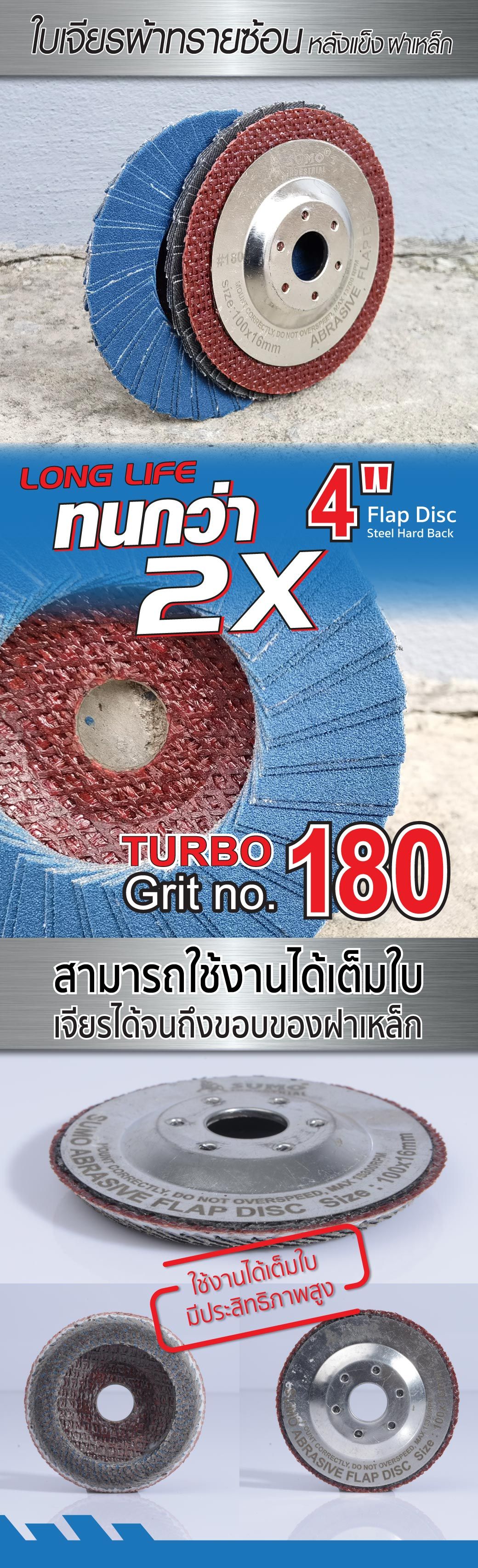 ใบเจียรผ้าทรายซ้อน 4" No.180 หลังแข็ง Turbo ฝาเหล็ก SUMO