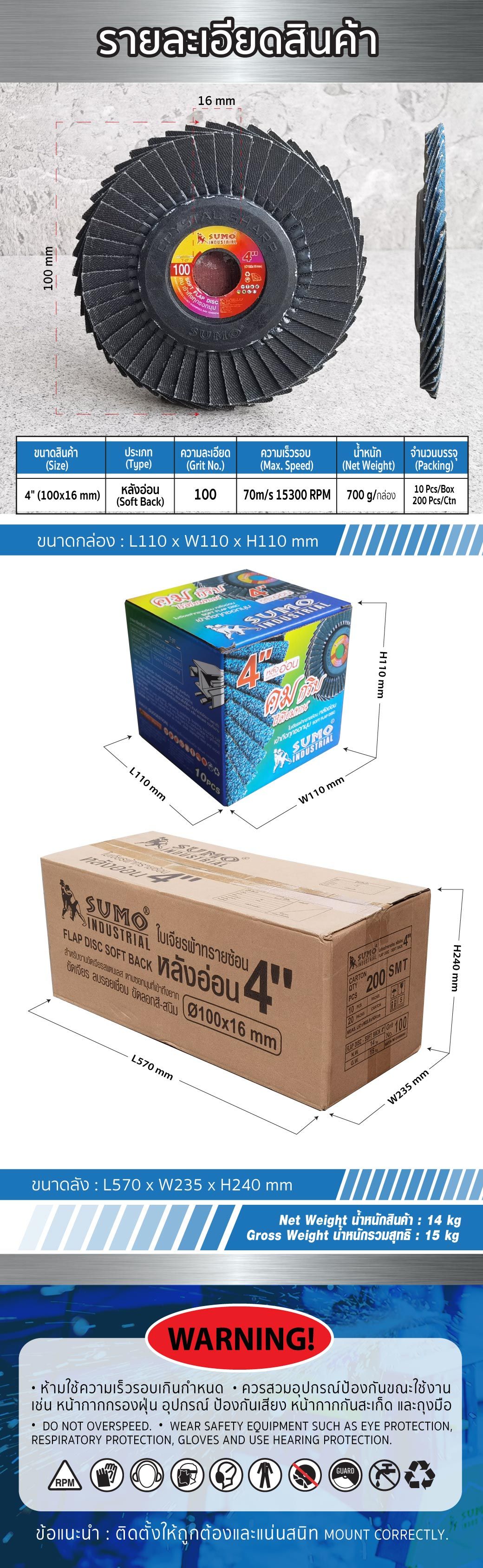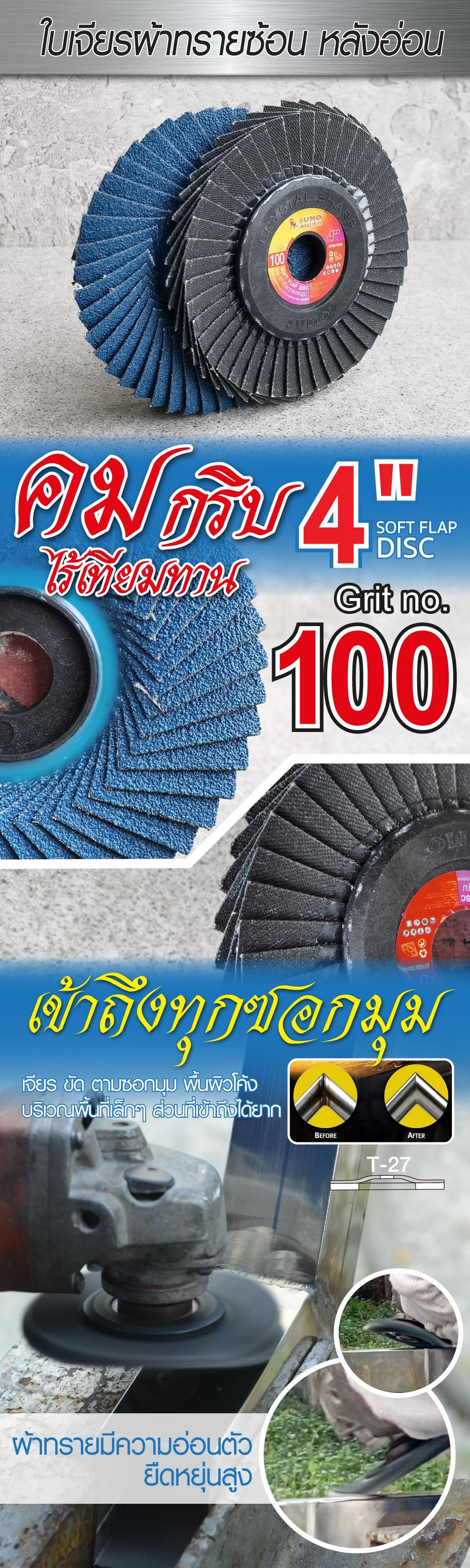 รายละเอียด ใบเจียรผ้าทรายซ้อน 4” No.100 หลังอ่อน