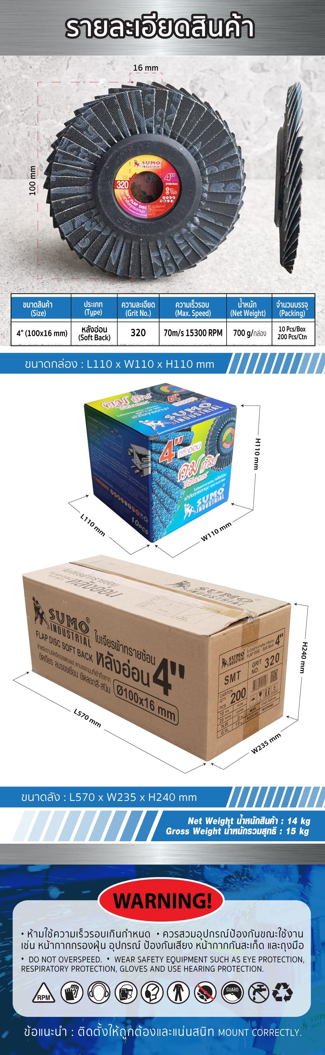 รายละเอียดใบเจียรผ้าทรายซ้อน หลังอ่อน SUMO