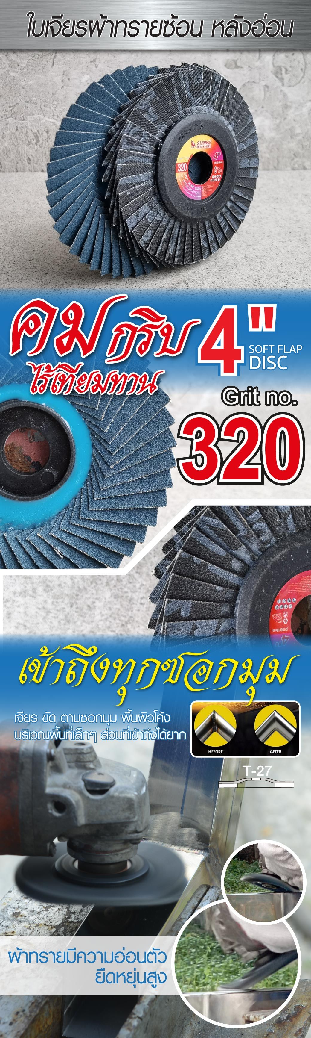 ใบเจียรผ้าทรายซ้อน 4" No.320 หลังอ่อน SUMO