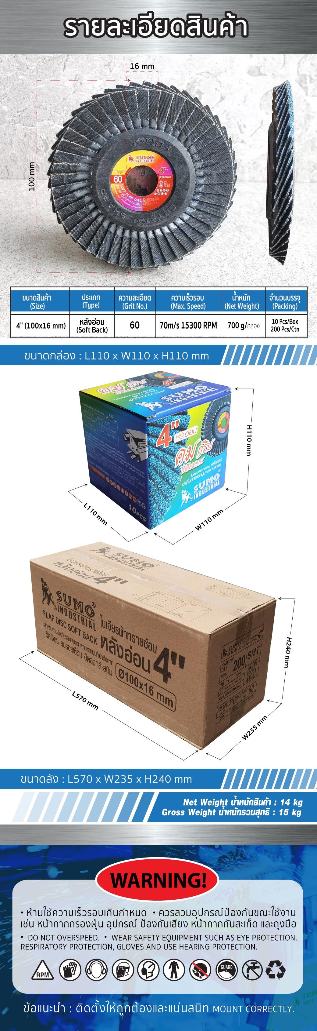 รายละเอียดใบเจียรผ้าทรายซ้อน หลังอ่อน SUMO