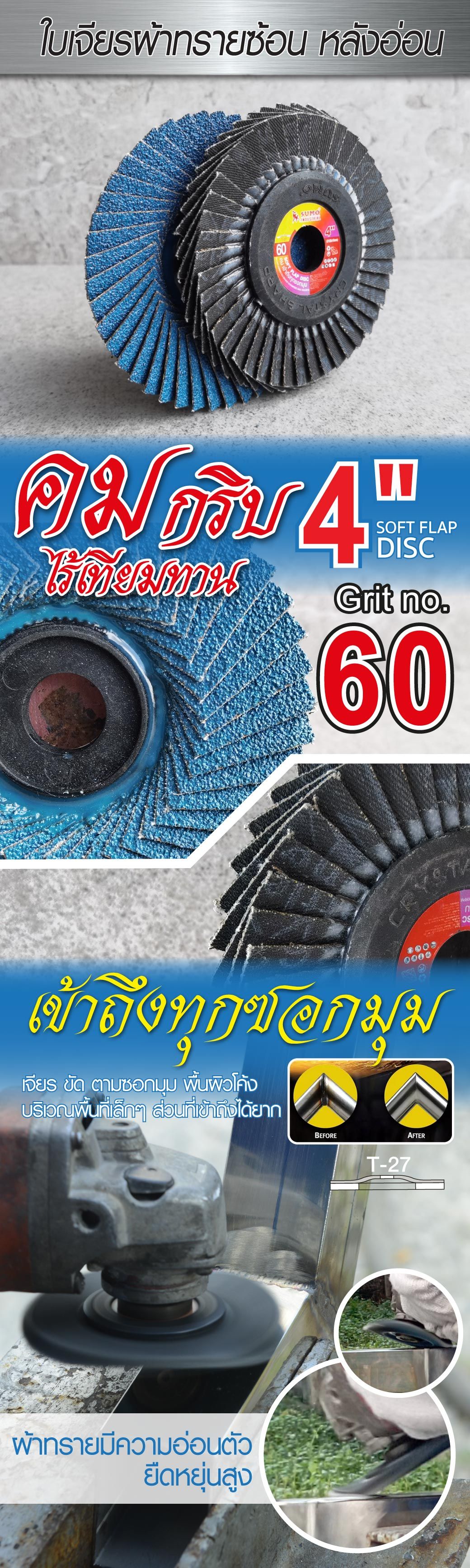 รายละเอียด ใบเจียรผ้าทรายซ้อน 4” No.60 หลังอ่อน