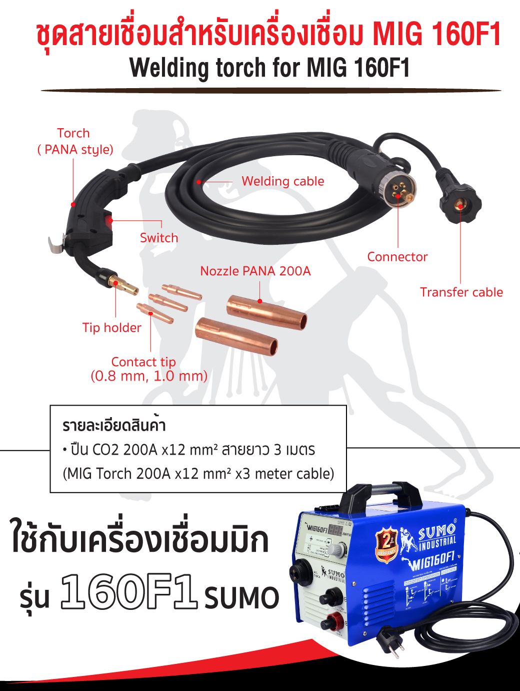 - เหมาะสำหรับเครื่องเชื่อมมิก รุ่น 160F1