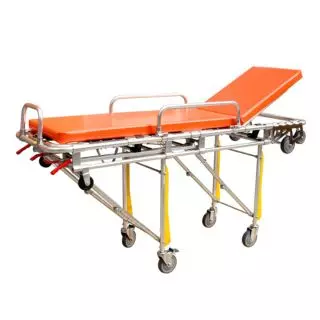 - The stretcher cart adopts the mechanical structure of folding leg, open the safety handle, only one ambulance personnel to push the patient into the ambulance.