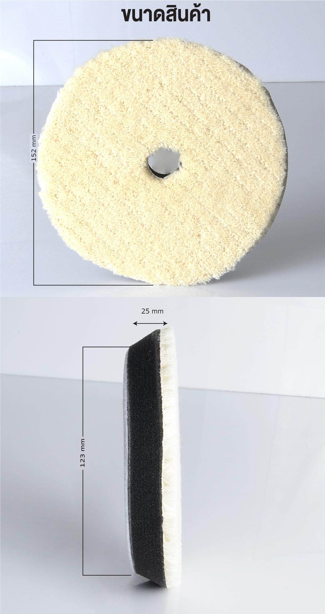แผ่นขัดขนแกะ 6 นิ้ว ใช้สำหรับงานขัดเปิดผิวสีรถยนต์ ขัดลบรอยลึก รอยขีดข่วน ขัดปรับสภาพสีผิวให้เรียบเนียน ขัดคราบสกปรก