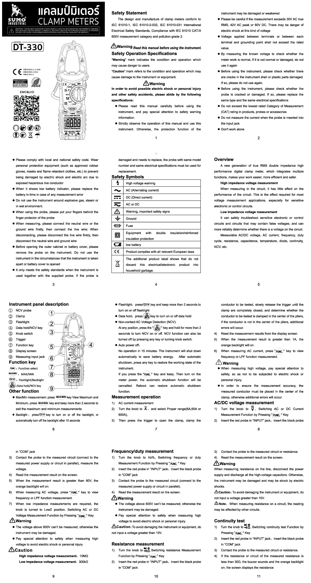 แคลมป์มิเตอร์ รุ่น DT-330 SUMO