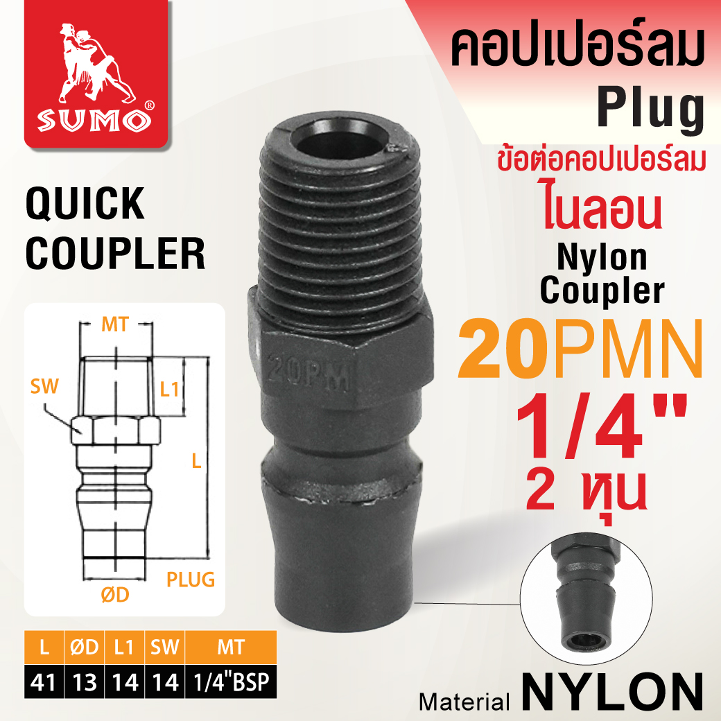 ข้อต่อคอปเปอร์ลมไนลอน 20PMN 1/4"