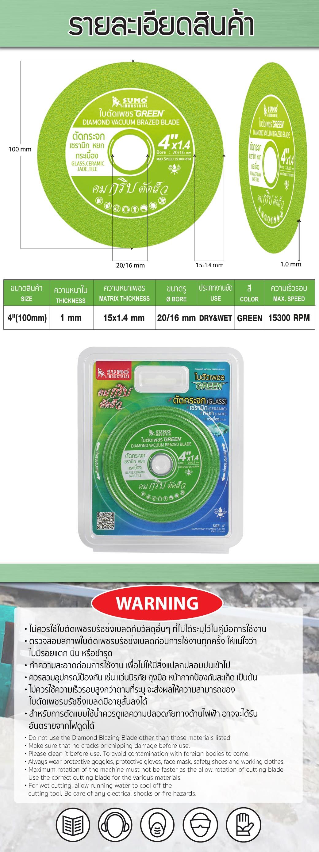 - ไม่ควรใช้ใบตัดเพชรกับวัสดุอื่นๆ ที่ไม่ได้ระบุไว้