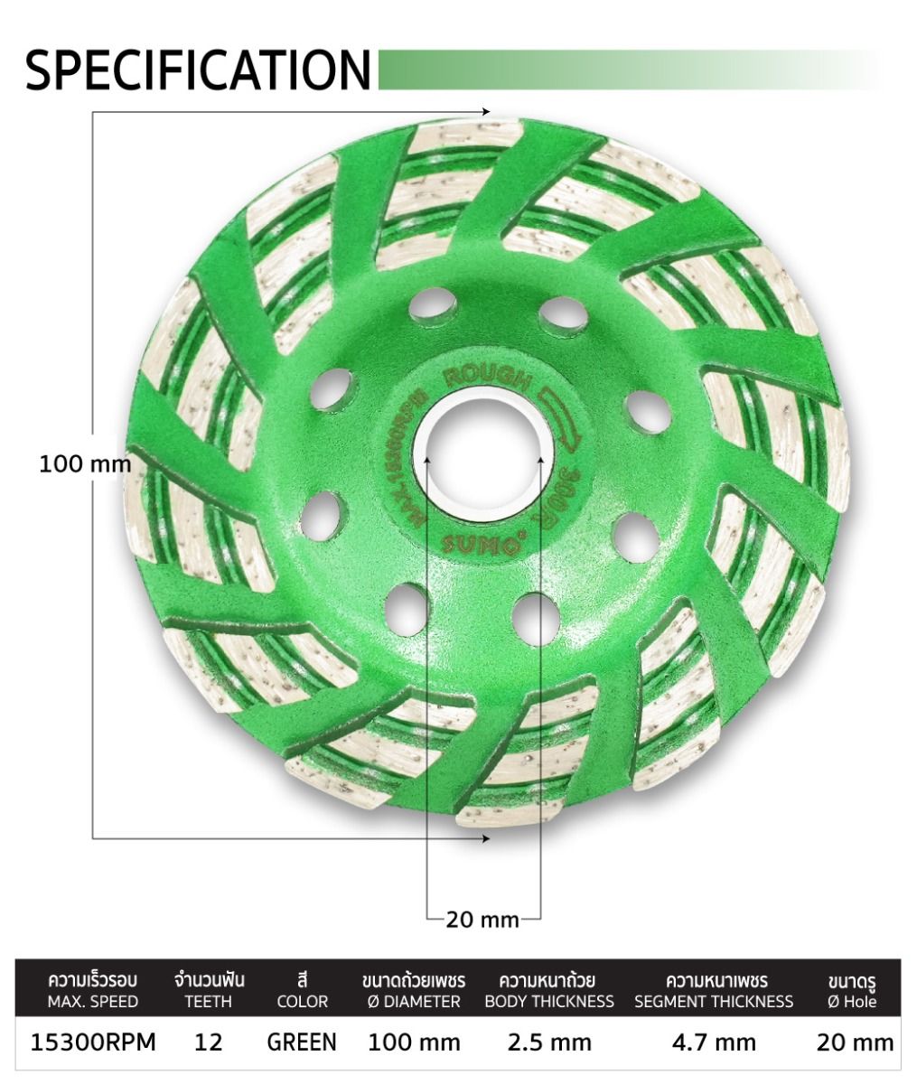 | ขนาดถ้วยเพชร (DIAMETER) | 100mm |