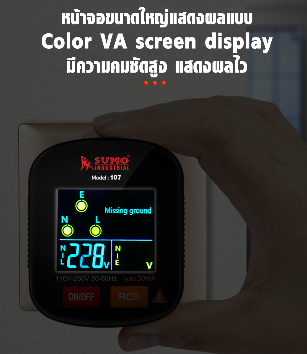 รายละเอียด เครื่องตรวจเช็คเต้ารับไฟฟ้า ดิจิตอล รุ่น 107 SUMO