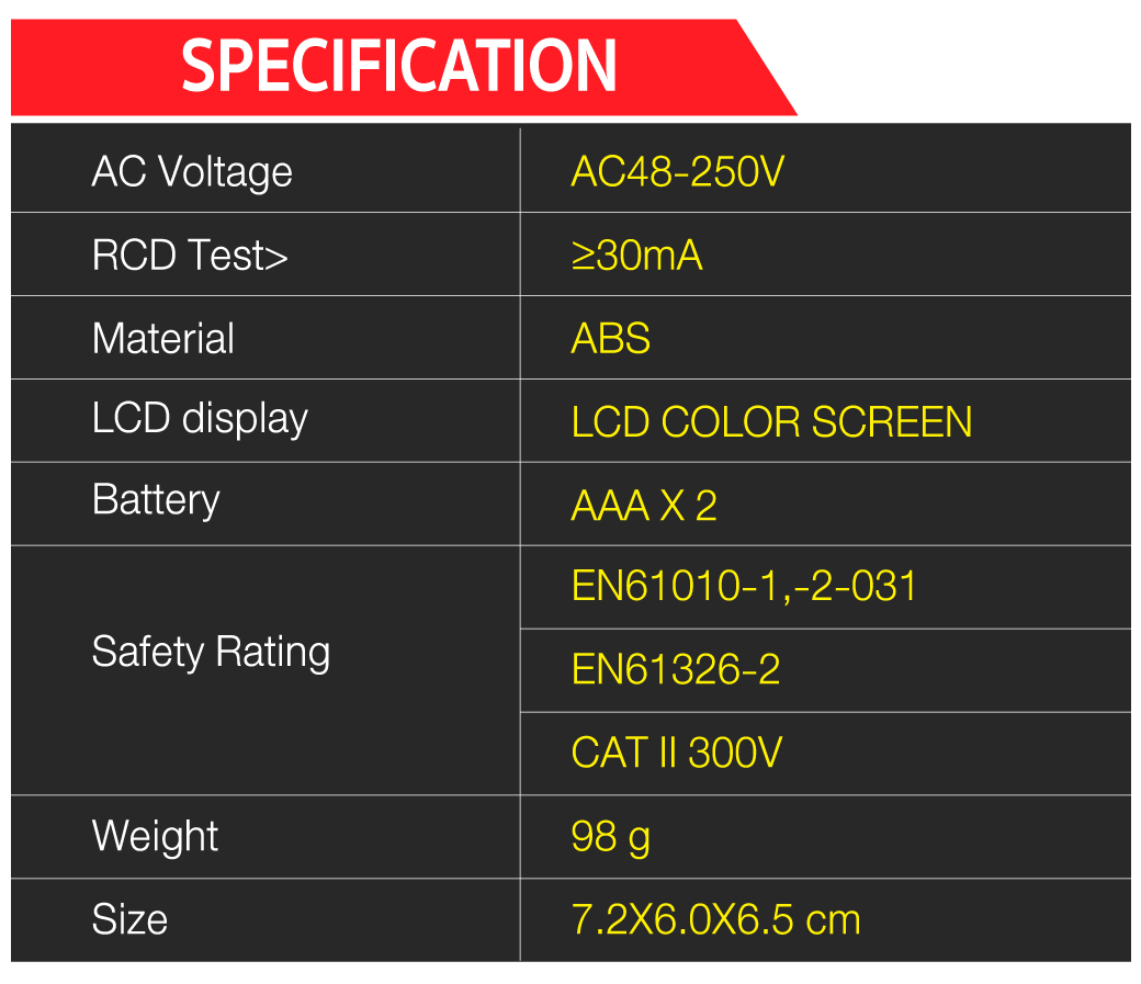 - suitable for checking sockets in buildings, offices, factories, and apartment the construction, etc.