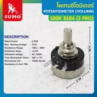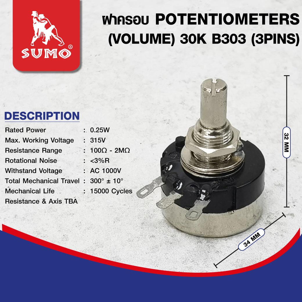 รายละเอียด Potentiometer (Volume) 30K B302 (3Pins)