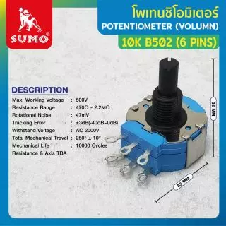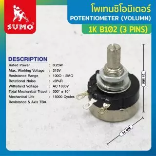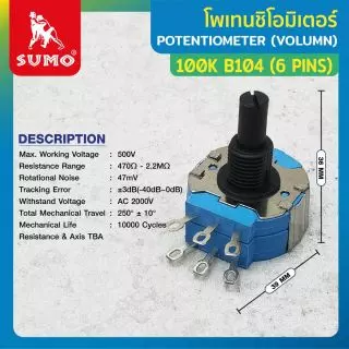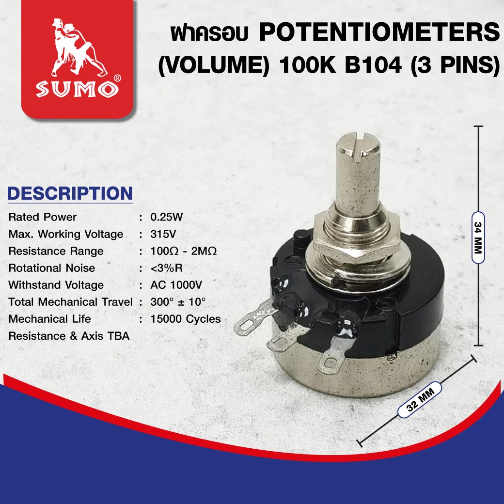 รายละเอียด Potentiometer (Volume) 100K B104 (3 Pins)