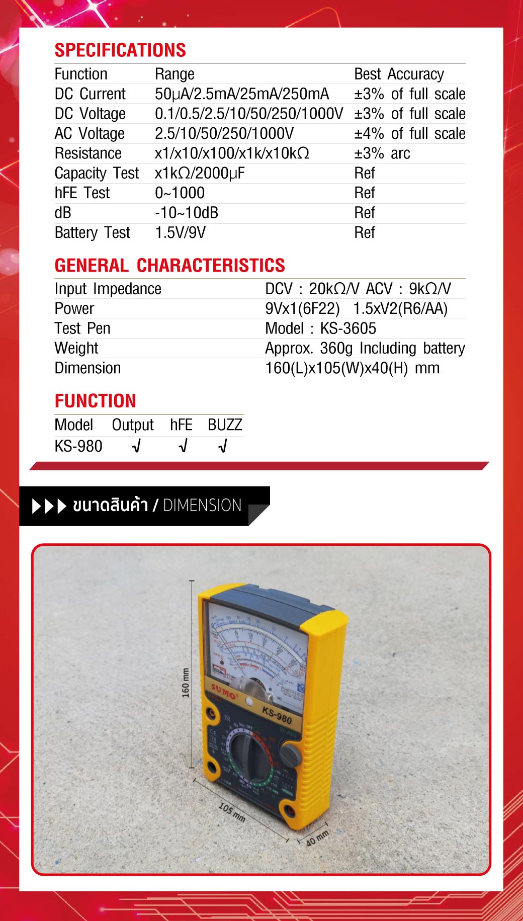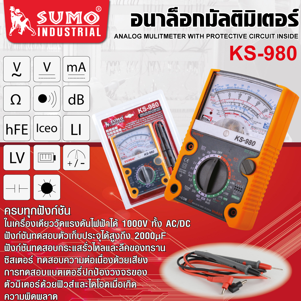 - อนาล็อกมัลติมิเตอร์ รุ่น KS-980 ครบทุกฟังก์ชันในเครื่องเดียว