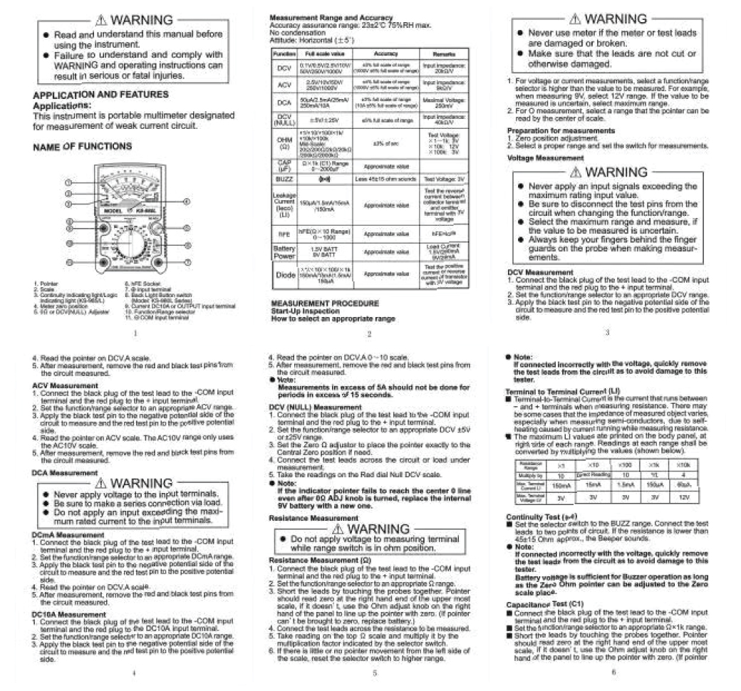 Input impedance | DCV : 20kΩ/V ACV : 9kΩ/V |