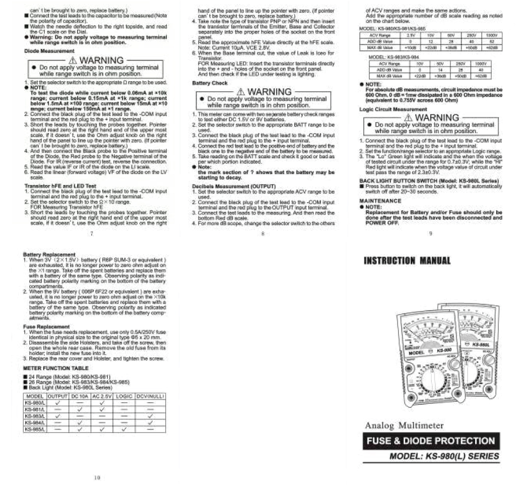 Analog Multimeter Mod.KS-980 SUMO