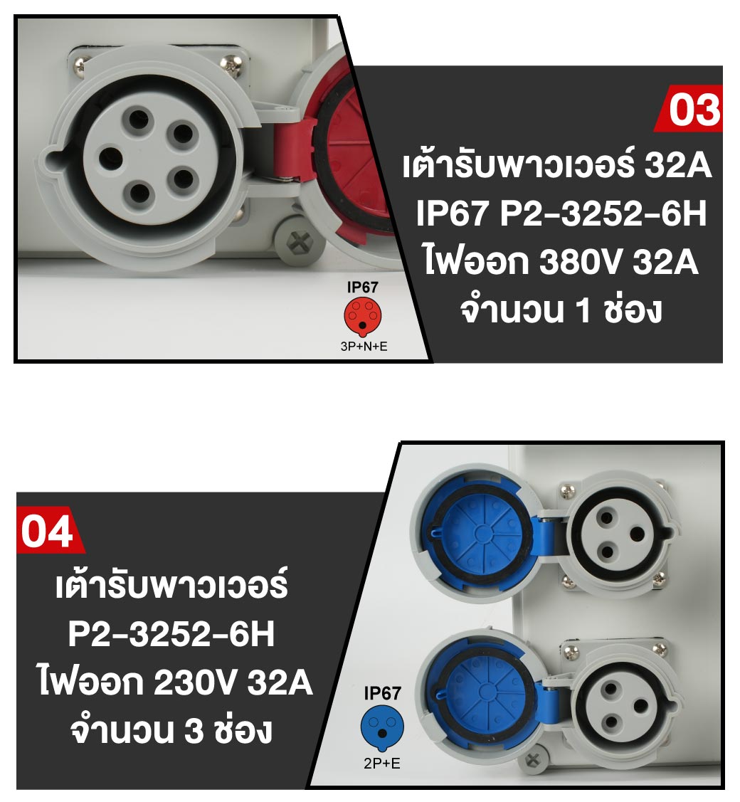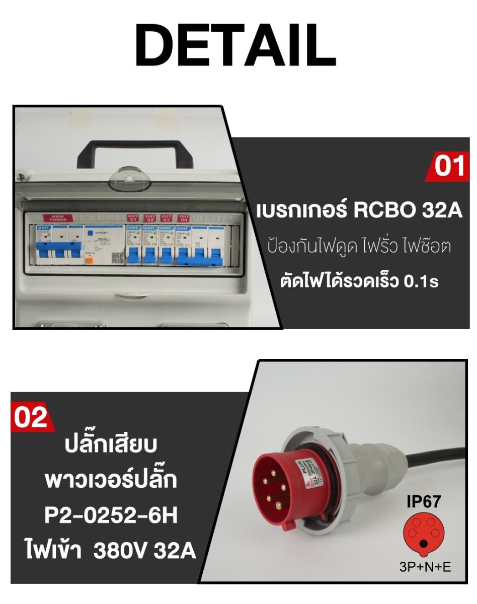 - กล่องกระจายไฟ มีฝาปิด ช่วยป้องกันน้ำเข้าไปในปลั๊กได้ ปลอดภัยต่อผู้ใช้งาน