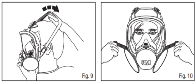 - Put mask covering the nose and mouth, then put the headband on the head.