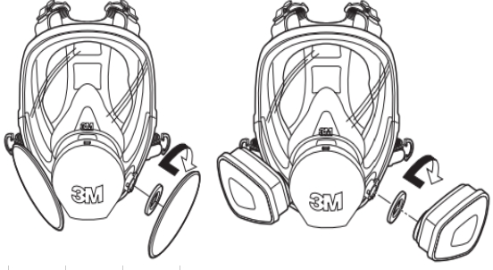 - หันสัญลักษณ์ลูกศรที่หน้ากากและไส้กรองเข้าหากัน