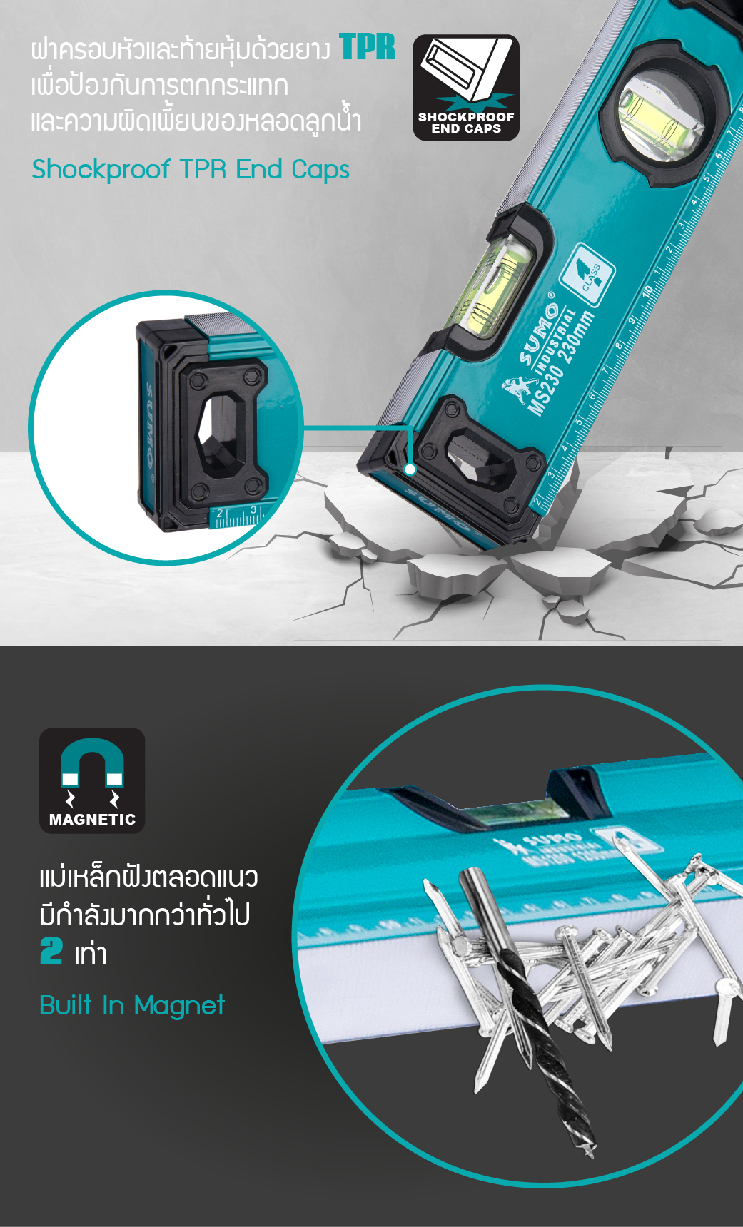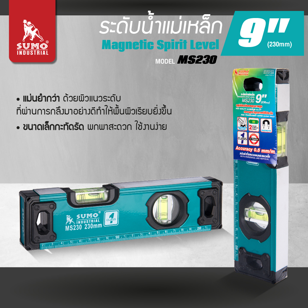 ระดับน้ำแม่เหล็ก 9" รุ่น MS230 SUMO