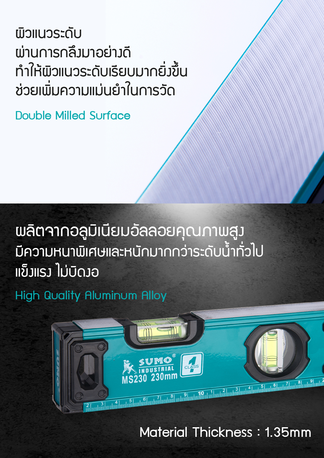 เครื่องมือวัดระดับน้ำ แม่เหล็กผลิตจากอลูมิเนียมอัลลอยคุณภาพสูง มีความหนาพิเศษ และหนักมากกว่าระดับน้ำทั่วไป