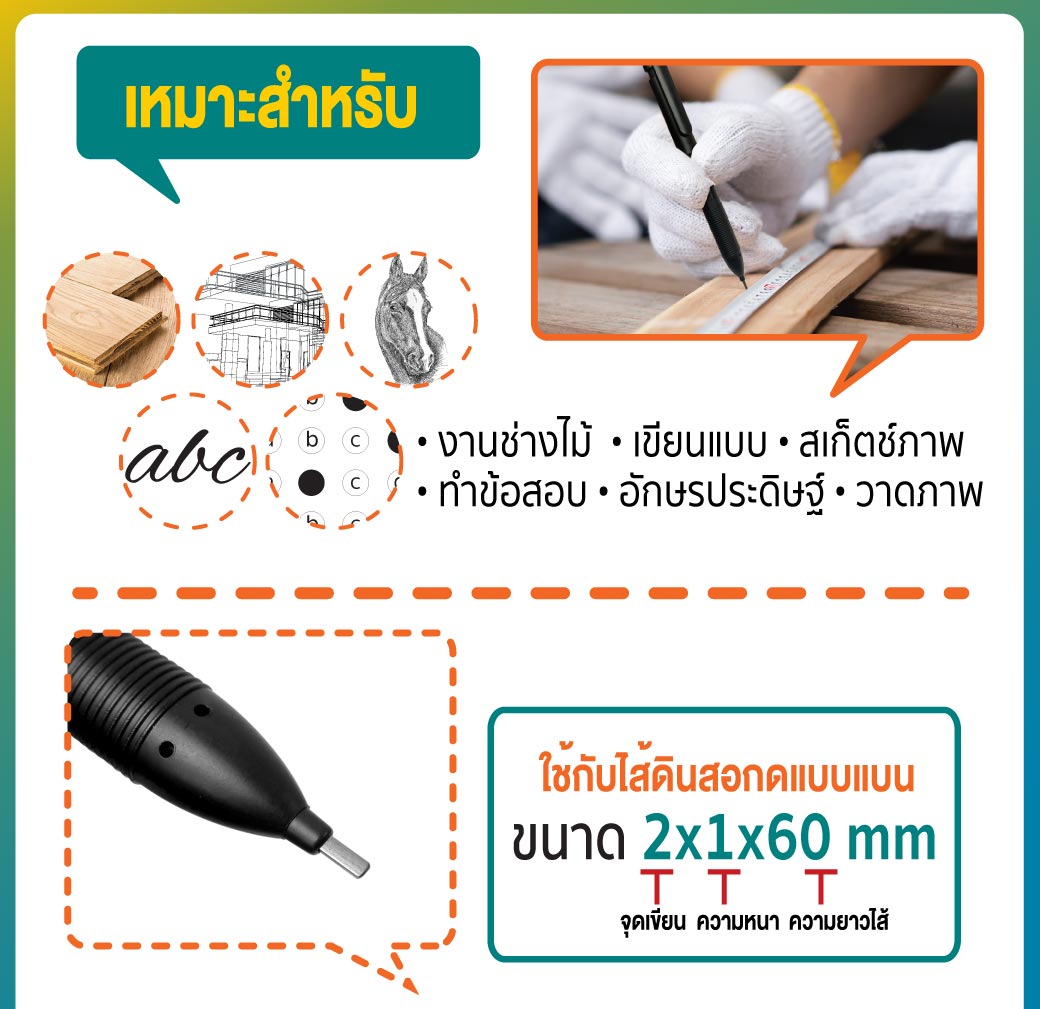 รายละเอียด ดินสอช่างไส้กด สำหรับช่างไม้มืออาชีพ