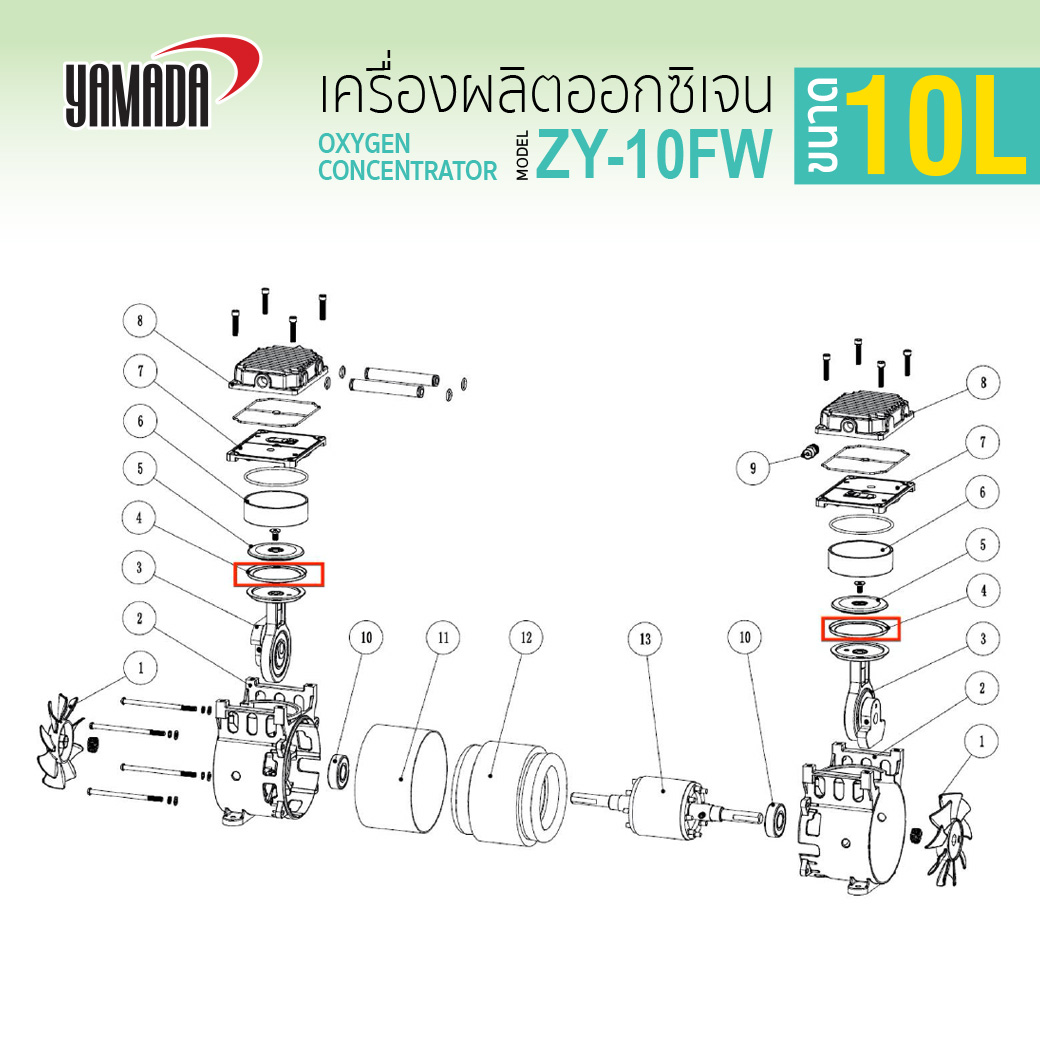 OX 10L แผ่นไดอะแฟรม (แหวนลูกสูบ), No.4 สำหรับ ZY-10FW