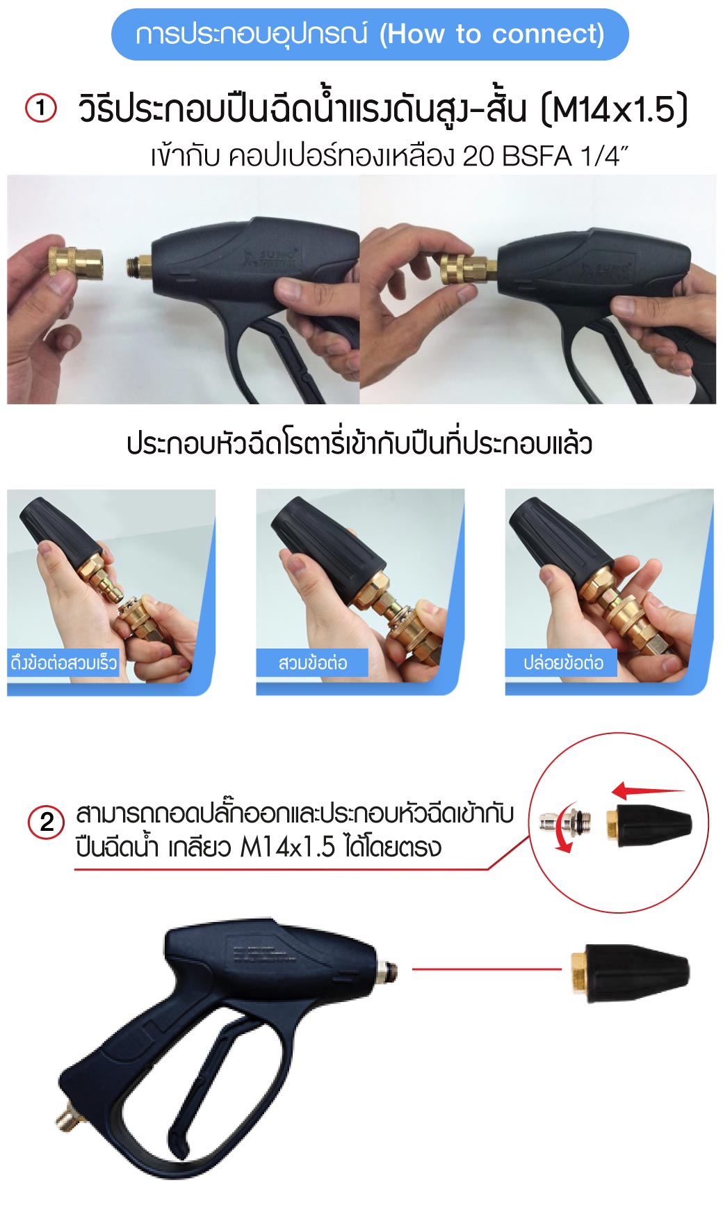 - ประกอบปืนฉีดน้ำแรงดันสูง-สั้น (M14*1.5) เข้ากับ คอปเปอร์ทองเหลือง 20 BSFA 1/4″