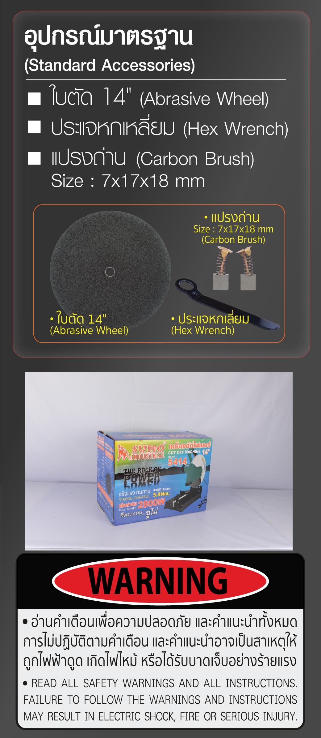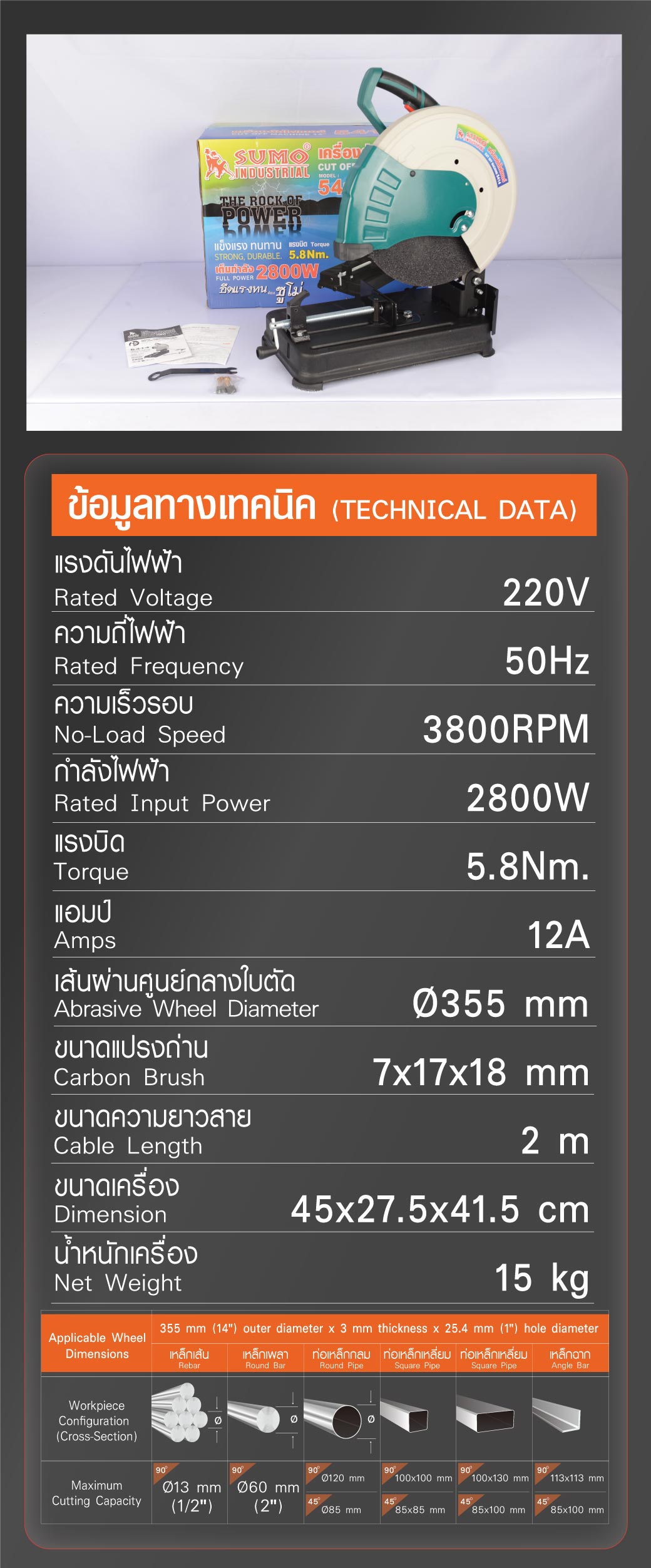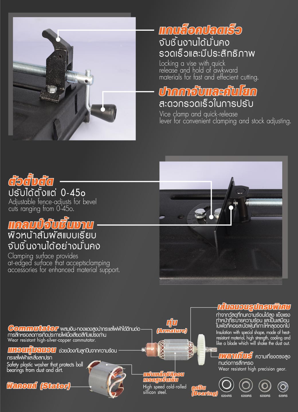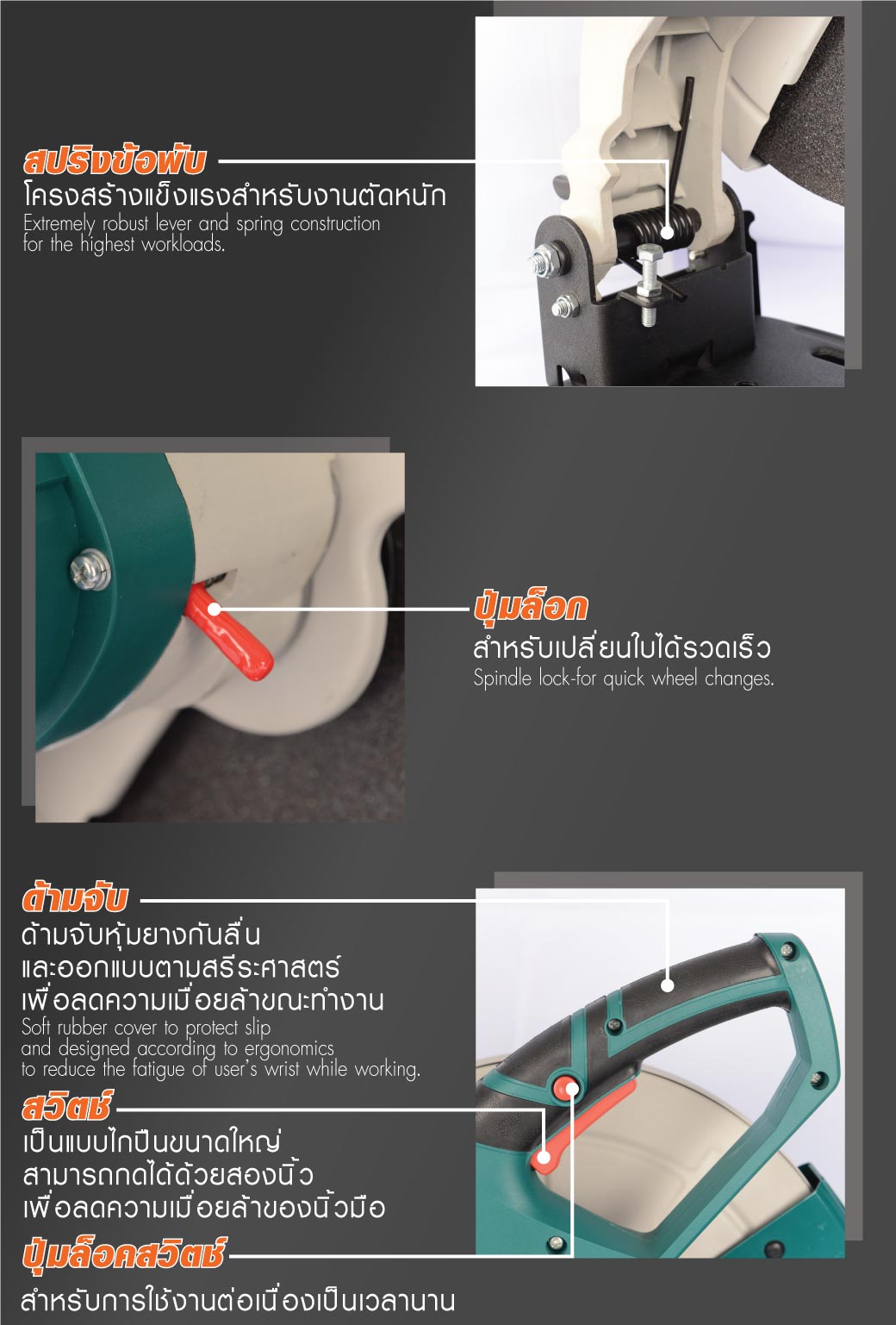 - เครื่องตัดเหล็ก ใช้ร่วมกับใบตัด 14" ขนาดรู 25.4 mm