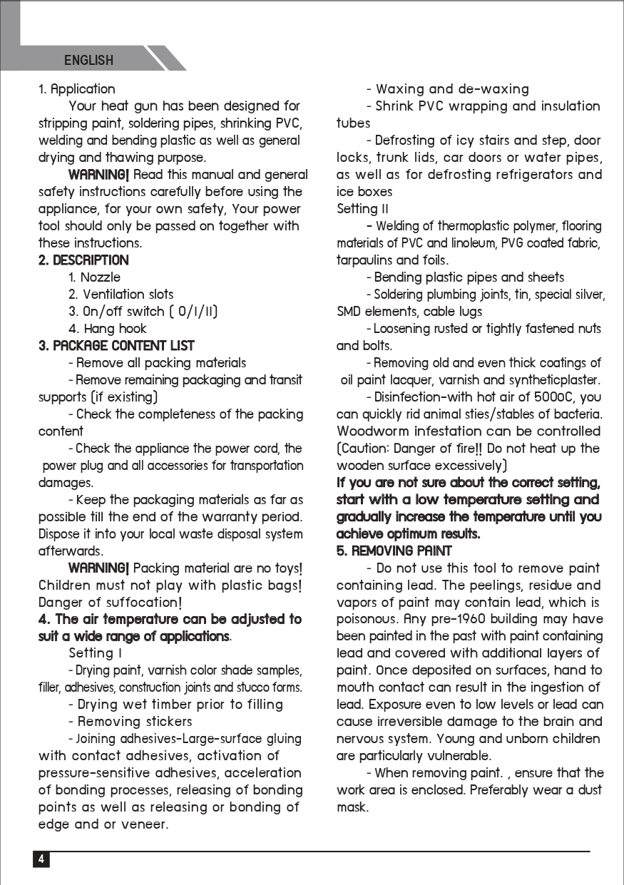 - ปืนเป่าลมร้อน นี้ได้รับการออกแบบมาสำหรับการจัดส่งท่อบัดกรีสี หดตัวเชื่อม PVC และการดัดพลาสติกขึ้นรูป รวมทั้งวัตถุประสงค์การอบแห้ง และ การทำละลายทั่วไป