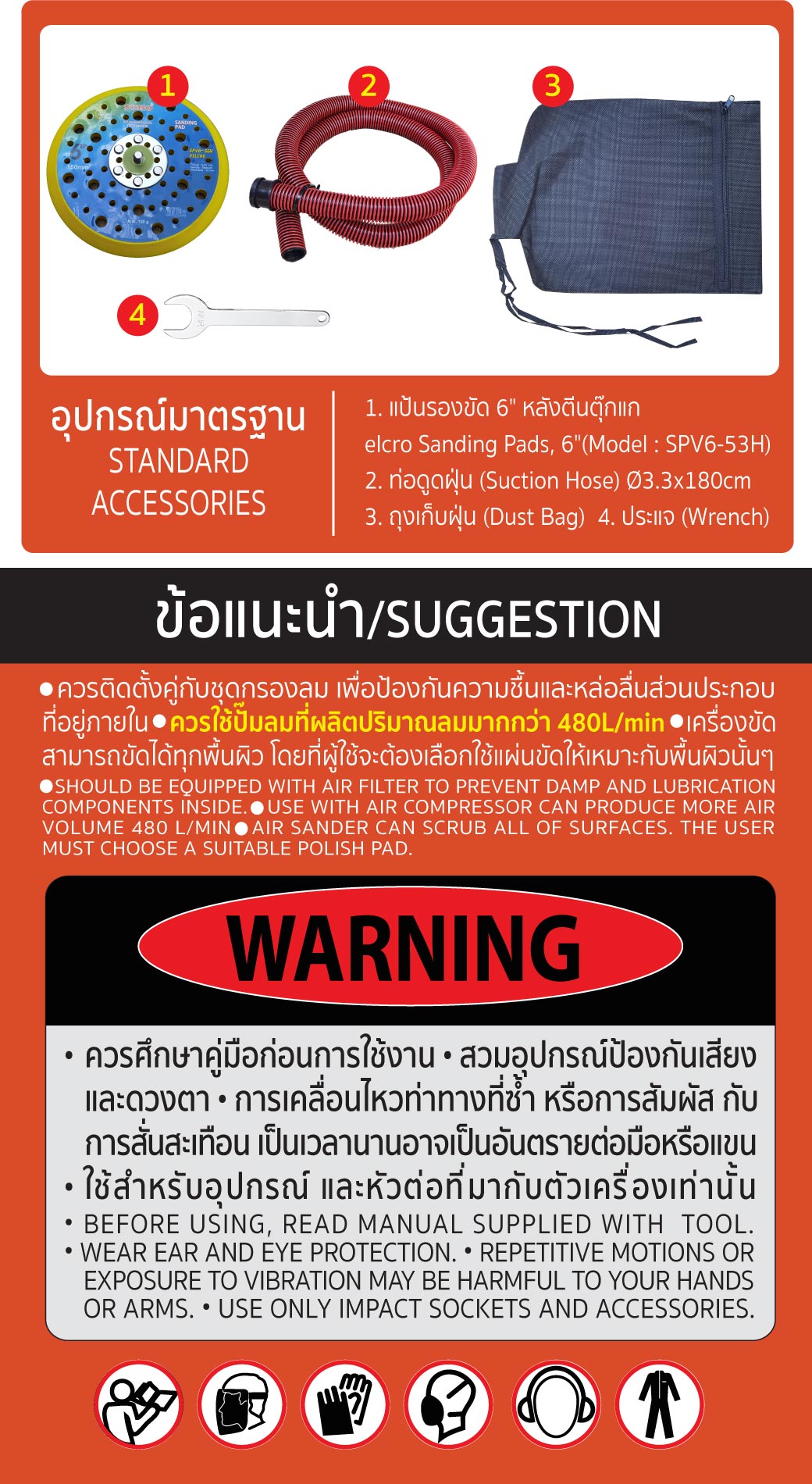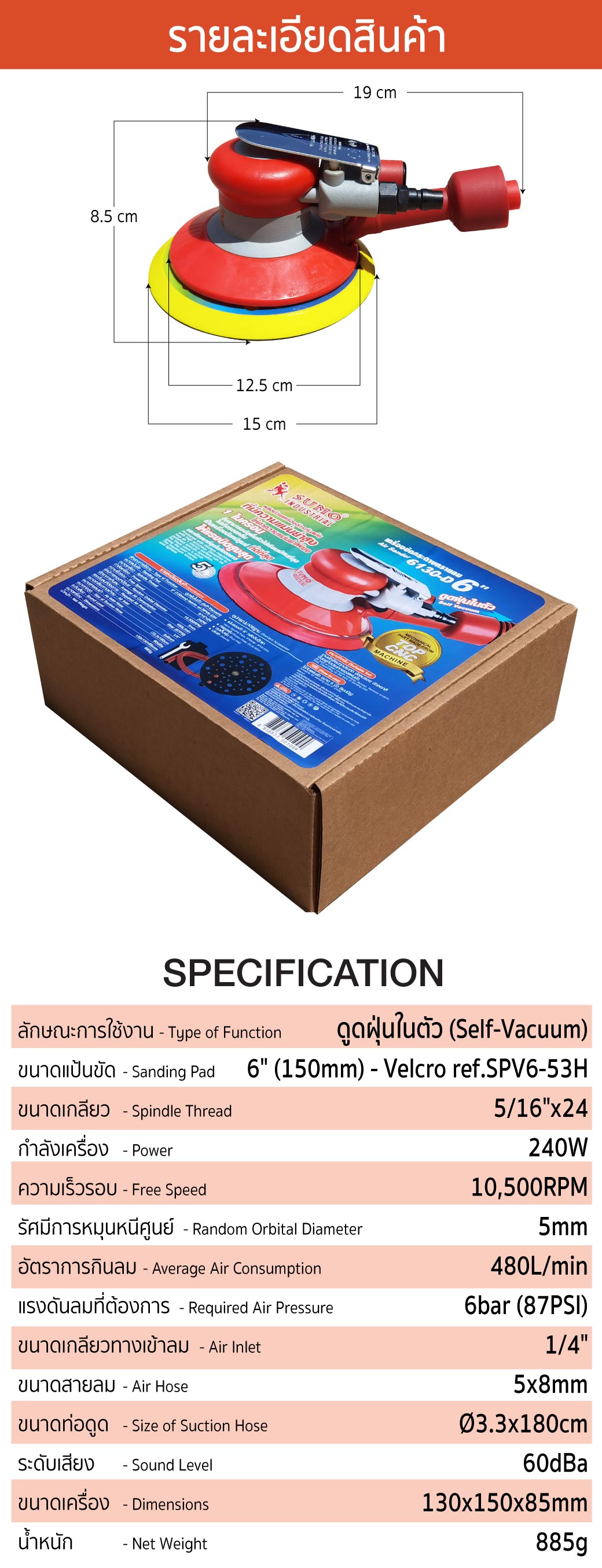 - ใช้กับแผ่นขัด ขนาด 6 นิ้ว (แบบมีรู)