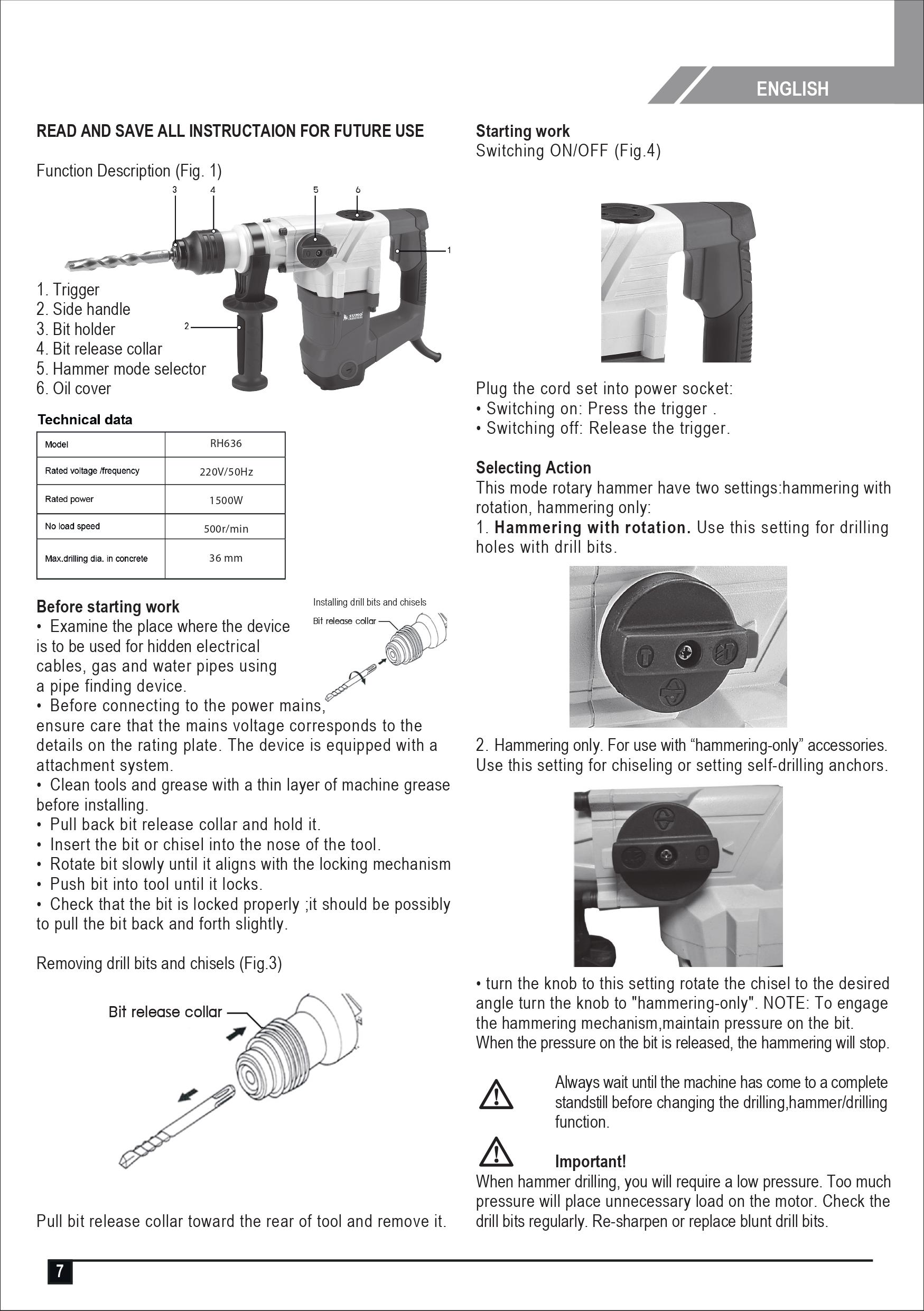 (Choose a drill bit that matches the job you are drilling. to extend the service life of Drills and Rotary Hammers.)