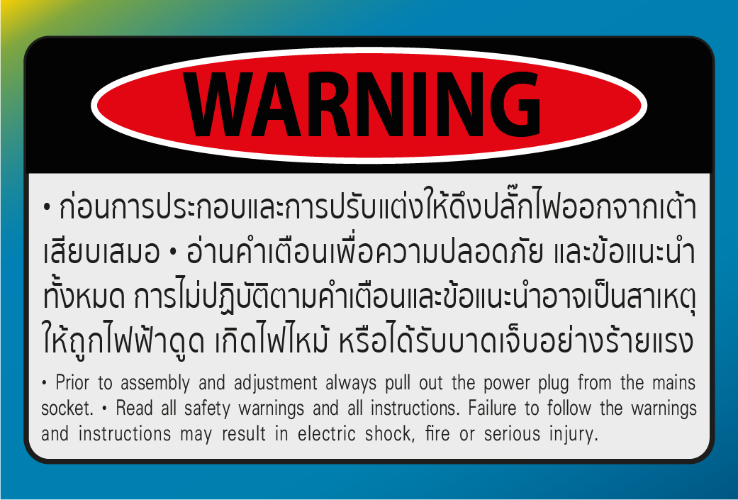 - ก่อนการประกอบและการปรับแต่งเครื่องให้ดึงปลั๊กไฟออกจากเต้าเสียบเสมอ