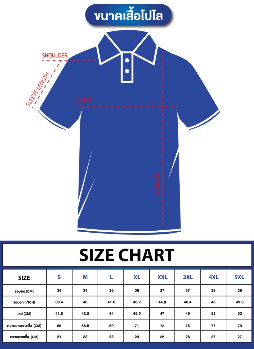 Length ความยาวเสื้อ | 26.6” | 27.6” | 28.4” | 29.2” |