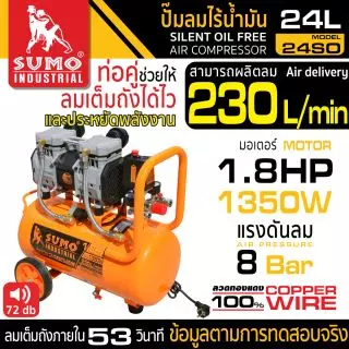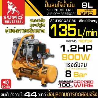 ปั๊มลมไร้น้ำมัน L Type 50L SUMO