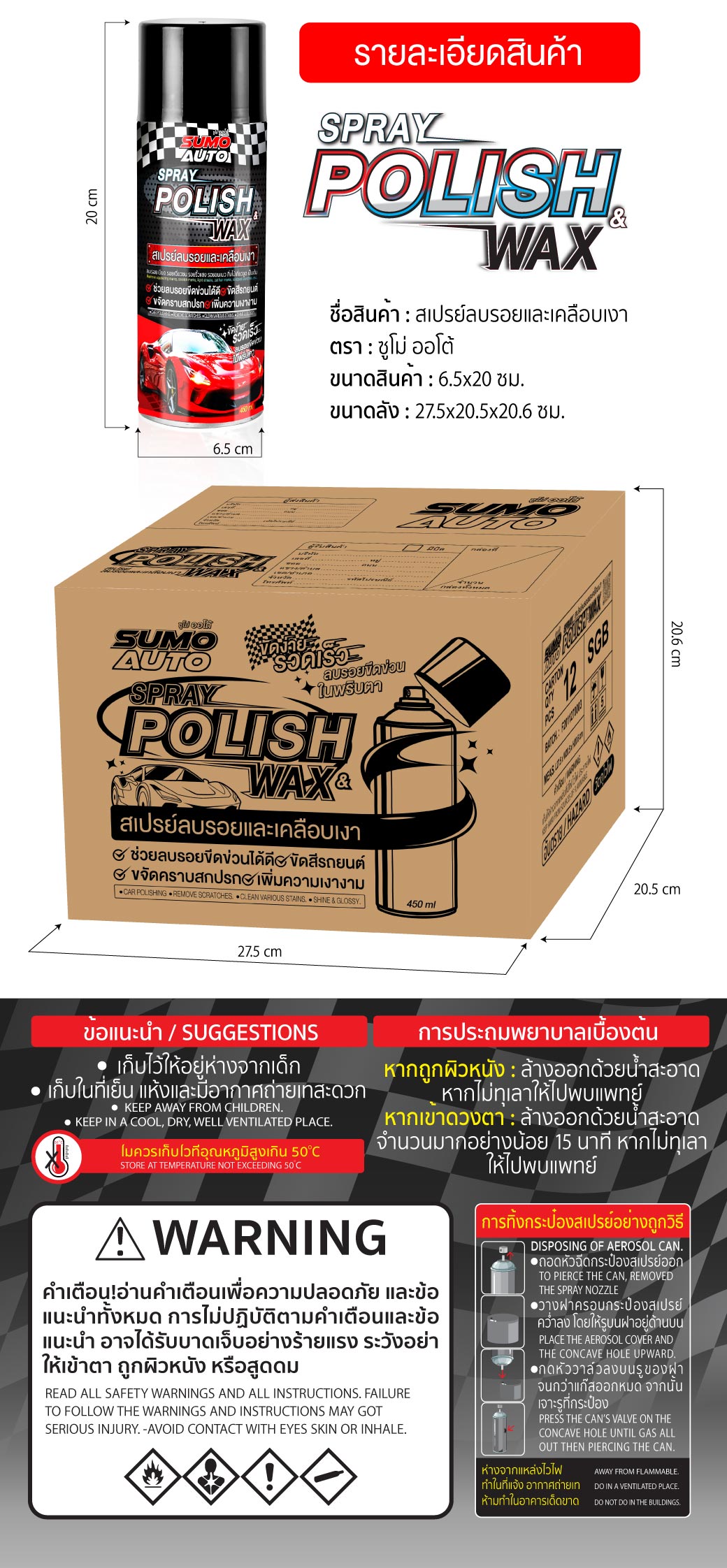 สเปรย์ลบรอยและเคลือบเงา 450ml SUMO AUTO