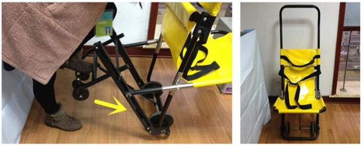 - เหมาะสำหรับใช้ในอาคารสูงเพื่อเคลื่อนย้ายผู้ป่วยลงบันได ผู้ช่วยเหลือเพียงคนเดียวสามารถใช้เก้าอี้ลำเลียงฉุกเฉินนี้ได้