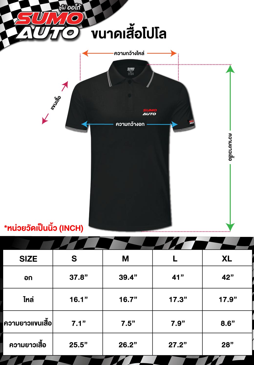 Length ความยาวเสื้อ | 26.6” | 27.6” | 28.4” |
