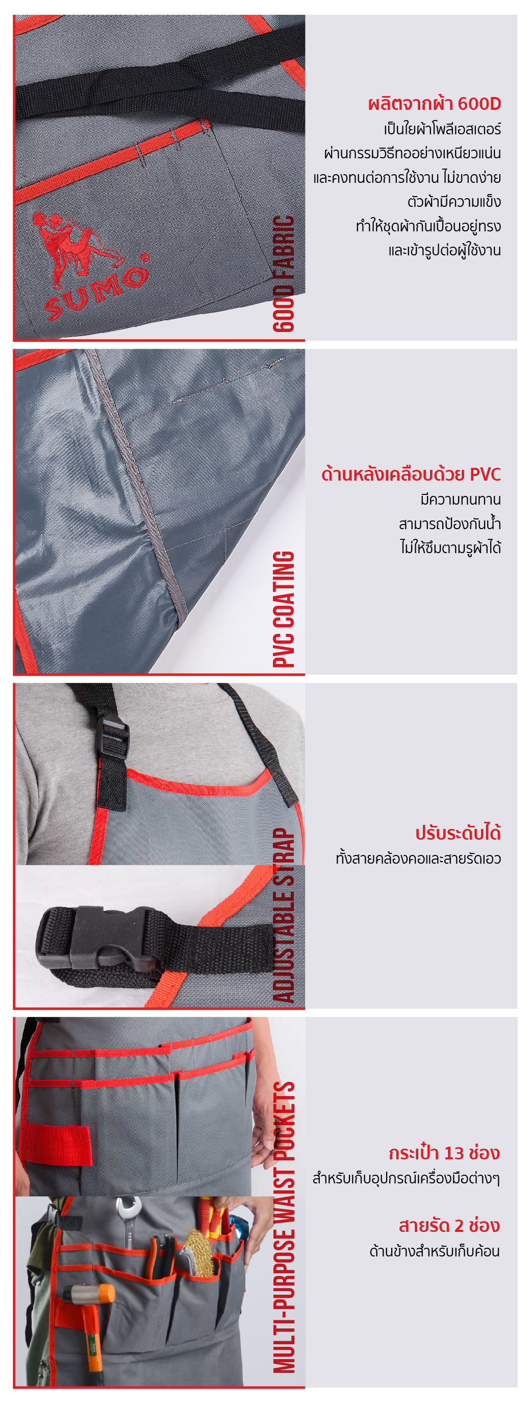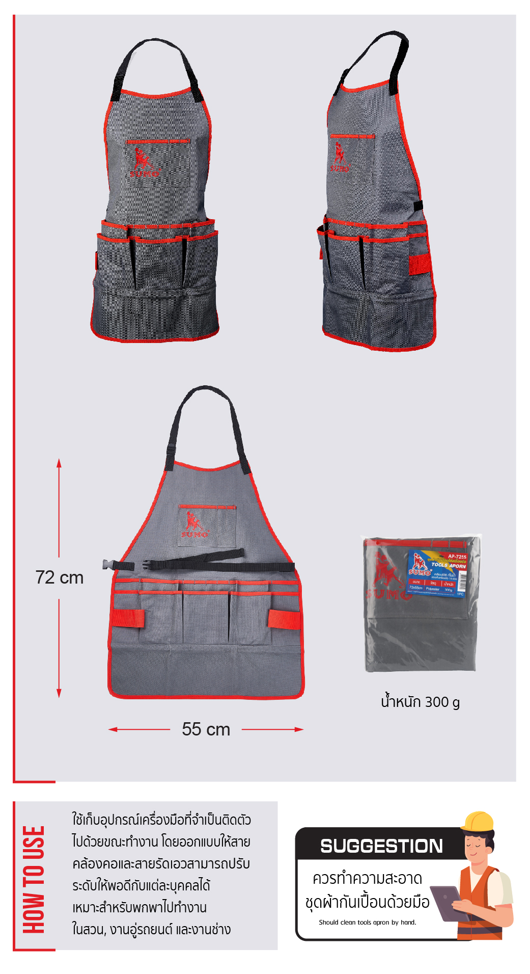 ชุดผ้ากันเปื้อนใส่เครื่องมือ รุ่น AP-7255 SUMO