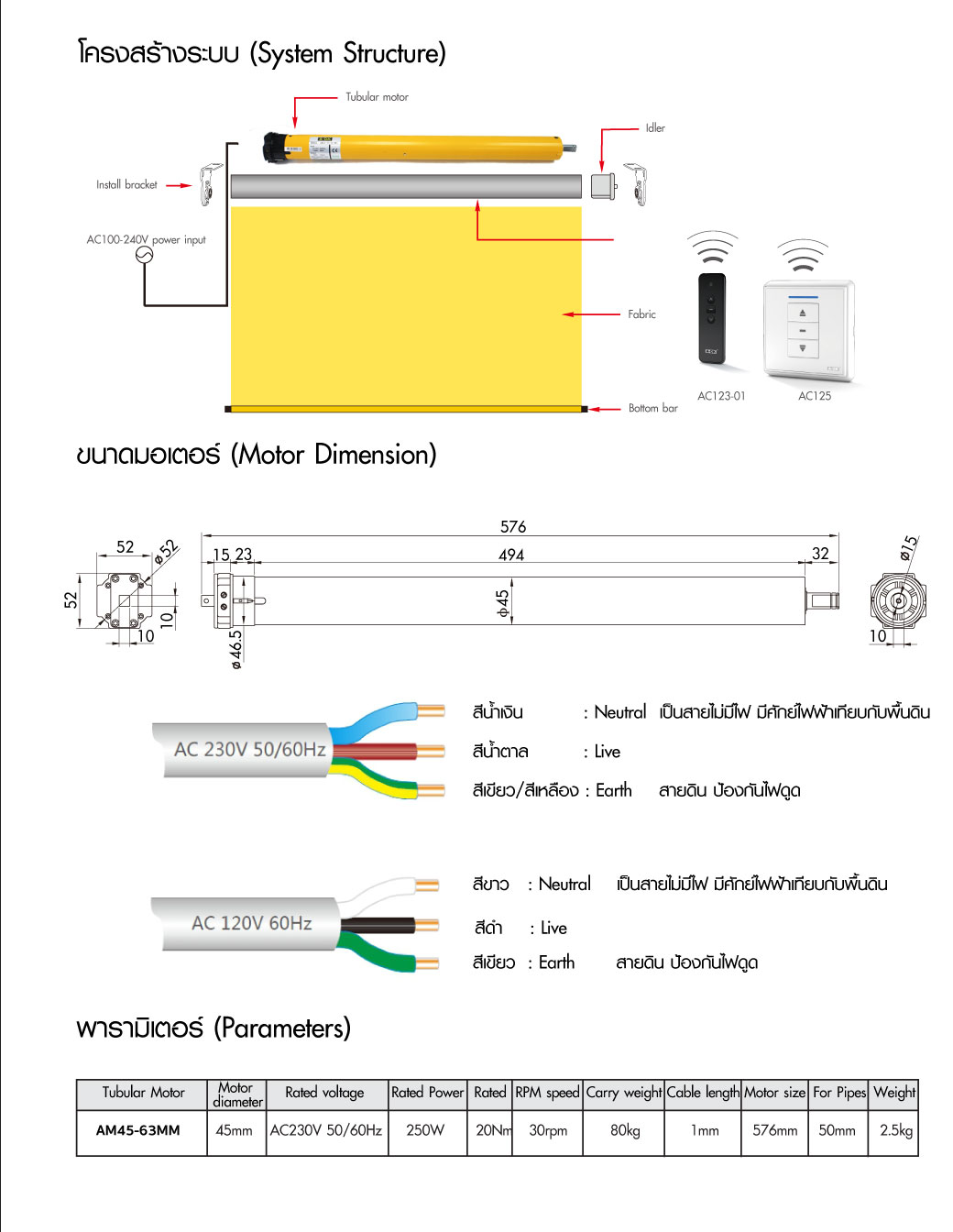มอเตอร์ม่านม้วน AM45-63MM