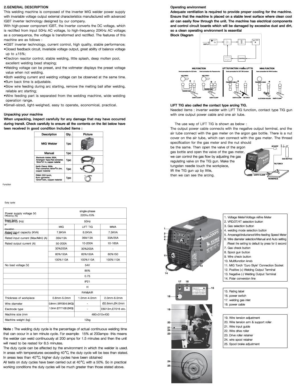 • MIG/LIFT TIG and MMA function for welding, various welding in single machine.