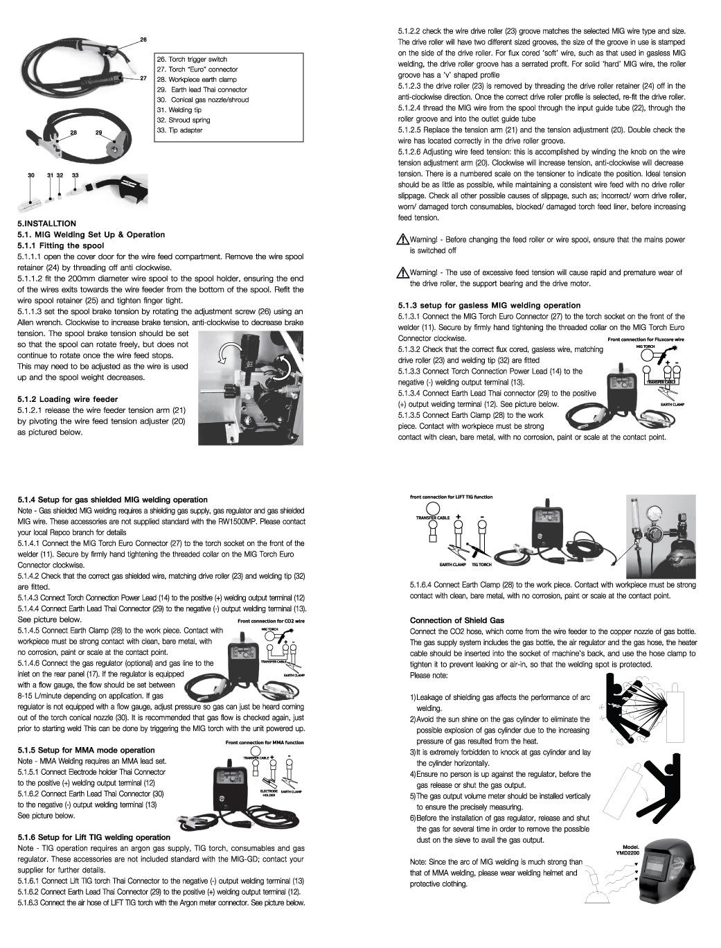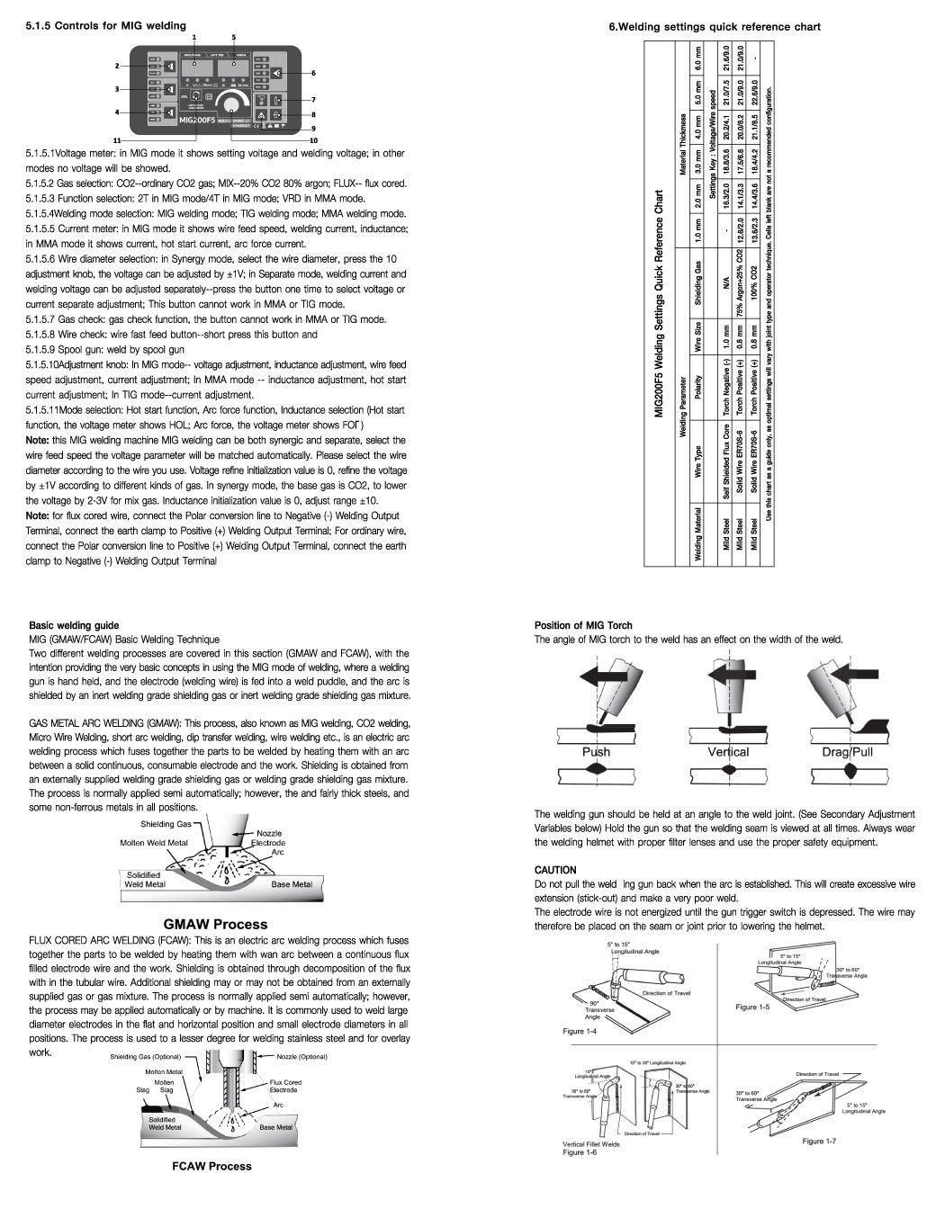 • Use flux core wire (E71T-GS  1.0mm) for steel welding, don't need CO2 gas in welding process.
