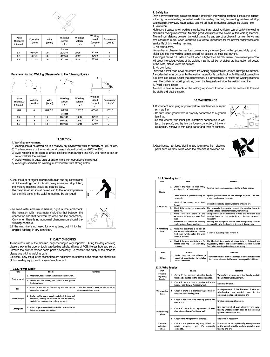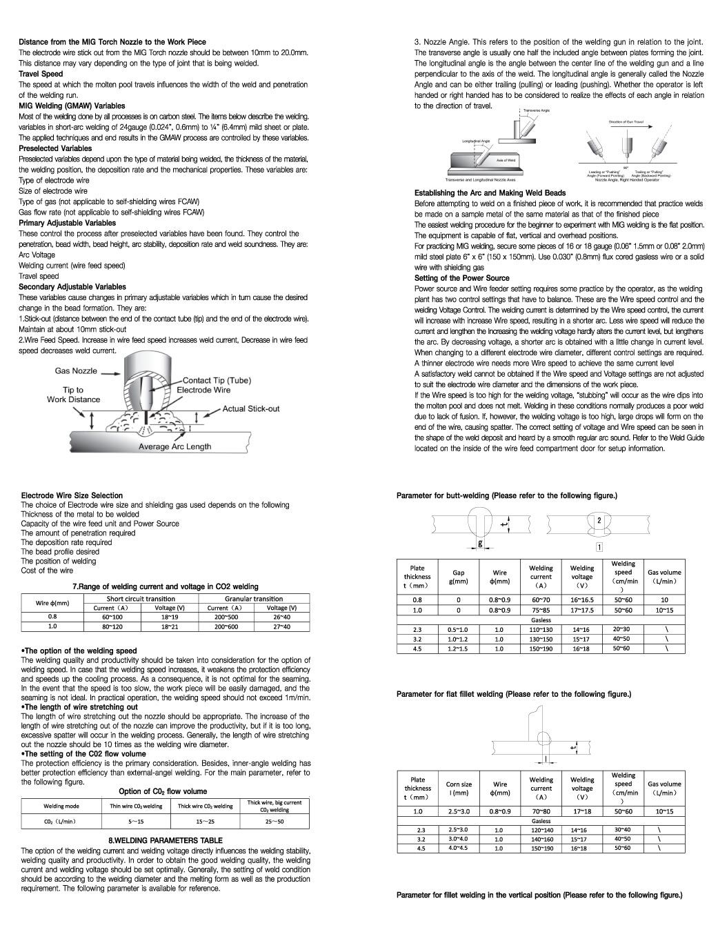 • Use CO2 wire (ER70S-6   0.8-1.0mm) for steel welding.