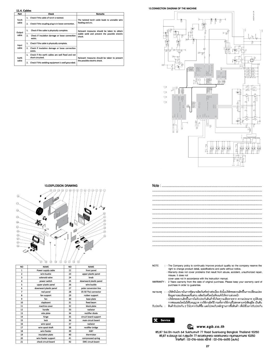 ป้องกันไฟดูดขณะเปลี่ยนลวดเชื่อม หรือ การอาร์คขณะพักการเชื่อม / Electric shock                                             protection