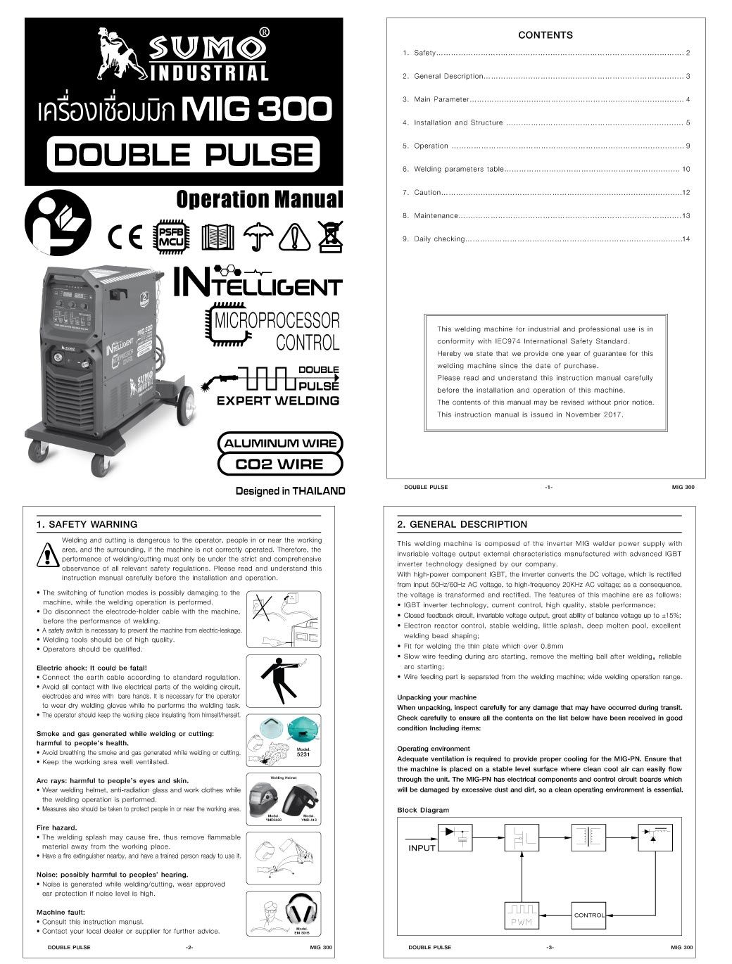 เครื่องเชื่อม MIG CO2 รุ่น 300 DOUBLE PULSE SUMOสำหรับงานเชื่อม อลูมิเนียม สแตนเลส  และ เหล็ก มีระบบควบคุมการเชื่อมที่ทันสมัยที่สุด ( MCU CONTROLLER ) และปรับตั้งค่าที่ทันสมัยที่สุดด้วยระบบ ACTIVE SYNERGY กระแสไฟเชื่อมเสถียร และนิ่งที่สุดเพราะมีระบบชดเชยกระแสไฟ  ประหยัดพลังงานมากกว่าเครื่องเชื่อมหม้อแปลง 100%  ตัวเครื่องมีล้อสามารถเคลื่อนย้ายได้สะดวกและมีถาดสำหรับใส่ถังแก๊ส CO2